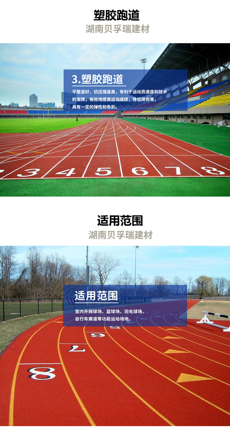 3、超強耐磨:面層選用高強度硅樹脂顆粒材料,獨特的雙層結構。比普通產品更加耐磨,有的使用壽命達到8年以上。